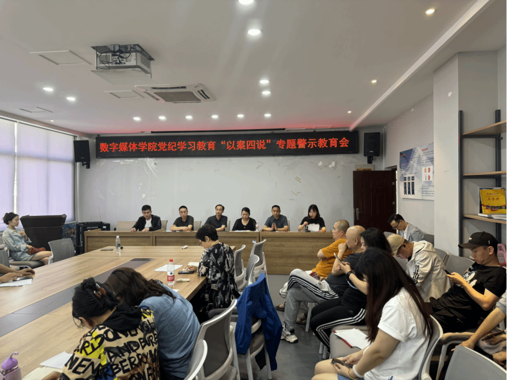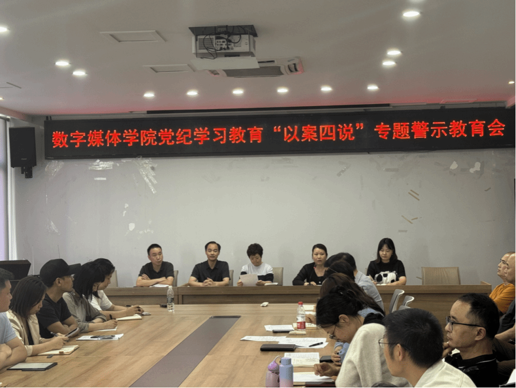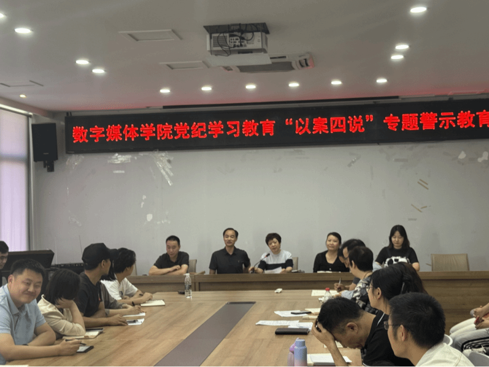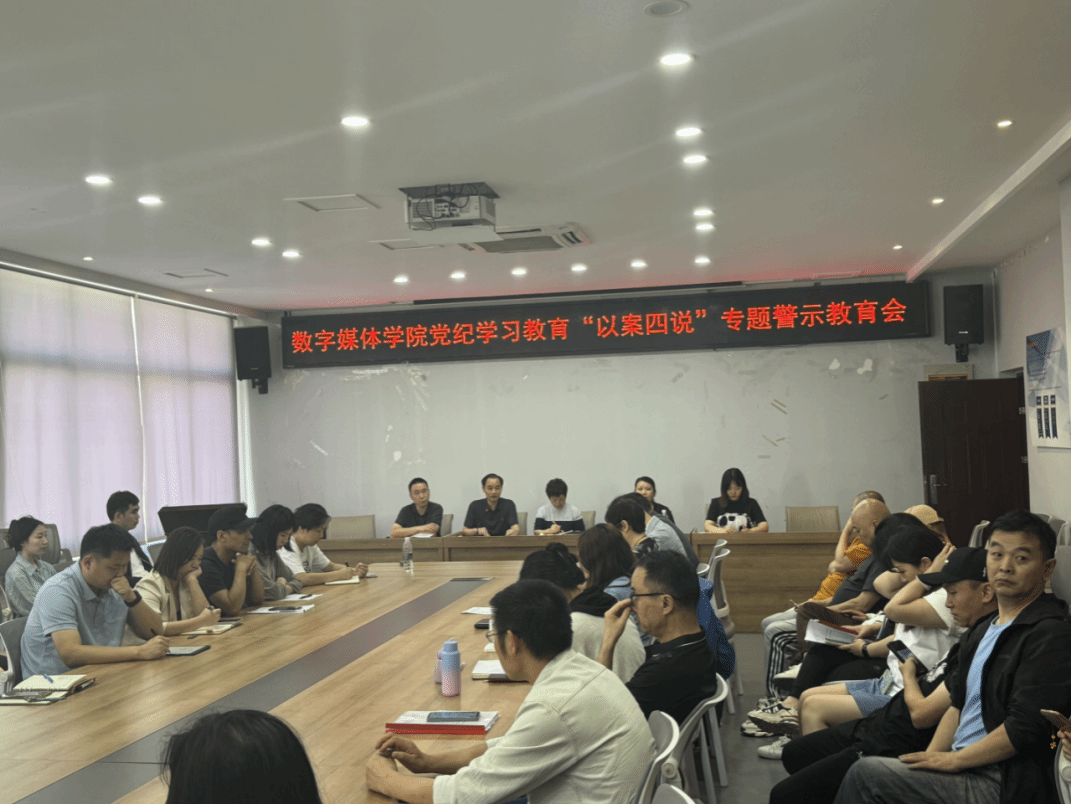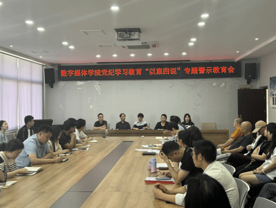 5月30日下午,数字媒体学院召开党纪学习教育警示教育会,全面落实党中央、重庆市委和重庆电子工程职业学院党委关于党纪学习教育的部署要求,深化“以案说纪、以案说法、以案说德、以案说责”,推动全院党员干部和全院教职工认真学习《中国共产党纪律处分条例》,教育引导全院党员领导干部和全院教职工以案为戒、汲取教训,筑牢思想防线,坚守纪法红线。锻造忠诚干净担当的干部队伍。数字媒体学院联系校领导、学校党委委员、副校长谢义华同志莅临现场指导。学院全体处级科级干部、全体党员、各支部党总支纪检委员以及全院教职工参加会议。会议由学院党总支副书记钟佐彬同志主持。