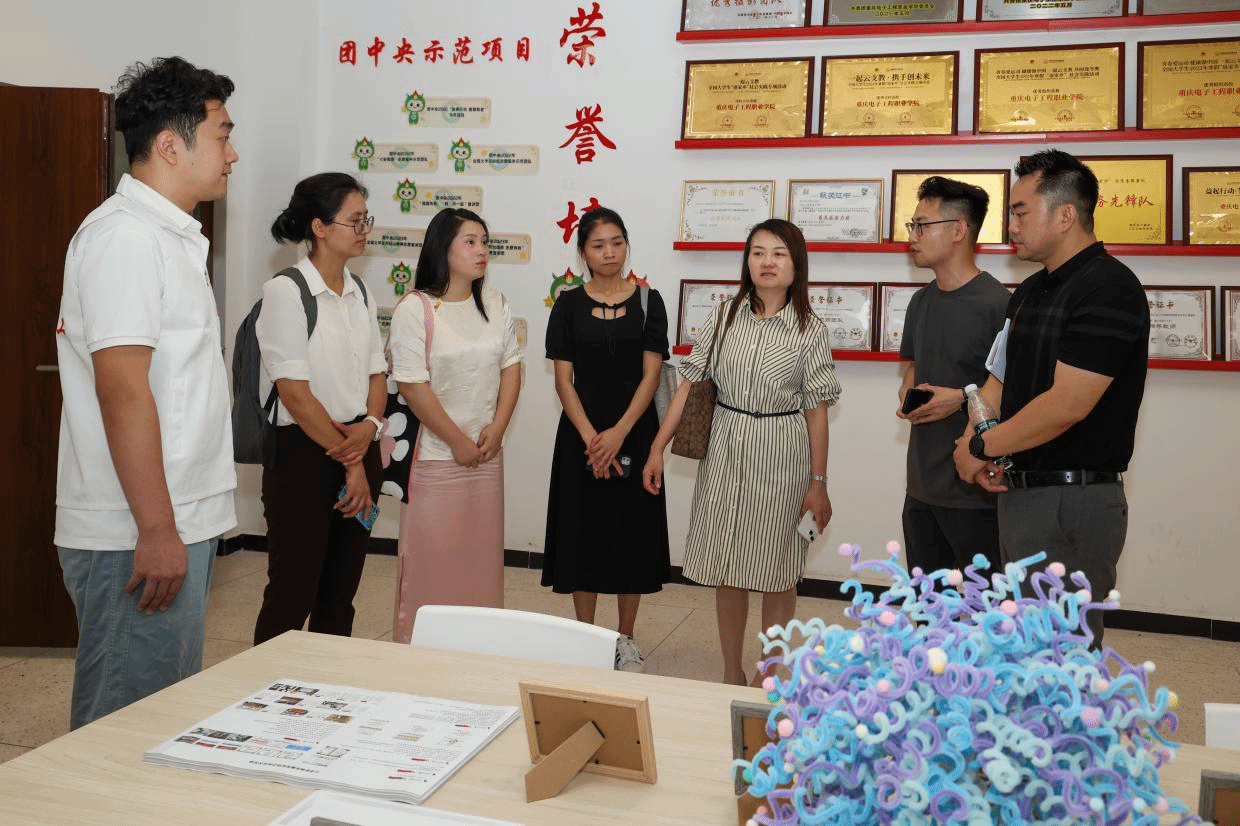 会后,吴梁洲、聂浩虹、李创带领参观“小手炉”辅导员学雷锋育人实践工作室。重庆城市职业学院商学院团总支书记马容表示,感受到了我院“书院式公寓”的浓厚氛围感,对辅导员工作室建设的优秀成果表示肯定。聂浩虹向重庆城市职业学院商学院的领导和老师详细介绍了工作室的建设情况,强调了培养学生用实际行动回报社会服务群众,以此为基础提升学生的思想道德修养的建设初衷,并进一步介绍了“小手炉”辅导员学雷锋育人实践工作室的示范性项目、荣誉表彰、开云电子平台_开云(中国)成果和科学研究成果。聂浩虹向杨翠书记介绍,工作室要在聚焦育人主业的基础上采用“小切口、大纵深”的思路开展建设工作,就一定能做出成效。