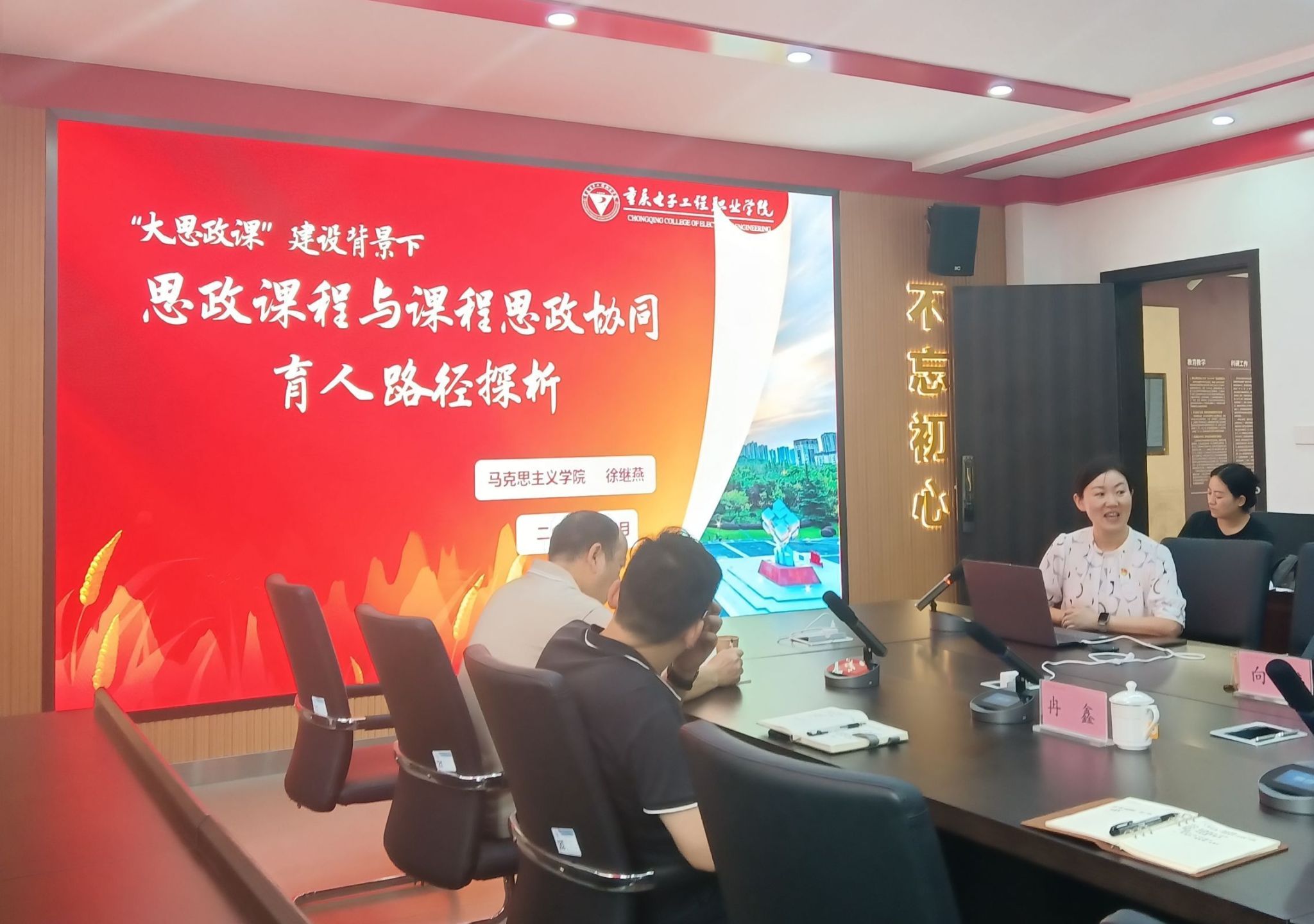 徐继燕部长、向宇婷老师和吴卿昊老师分别从“大思政课”建设的政策依据、课题申报、课程资源建设和课堂设计进行主题发言。徐继燕部长以思政课程与课程思政协同育人路径探析为主题,分析了思政课程与课程思政在六个方面的同向同行。向宇婷老师介绍了课程《习近平新时代中国特色社会主义思想概论》的资源建设情况,并讲解了课程思政案例“情景画说现代化 技术赋能强振兴”。吴卿昊老师对专题“中国式现代化创造了人类文明新形态”进行了说课。他从学生学习层级和五种实践活动类型的相互关系展示了如何借助实践活动把思政课讲深、讲透、讲活。