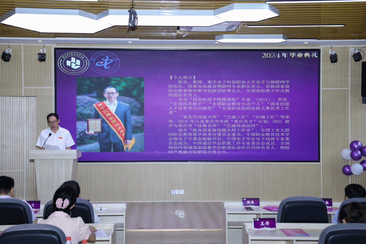 物联网系吕欣博士作为教师代表向毕业生们真情寄语。她肯定了同学们三年来的辛勤付出和成长蜕变,并希望毕业生们能够勇往直前,不断追求自己的梦想和目标,书写属于自己的精彩人生。