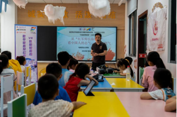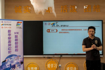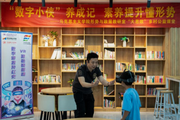 本次活动中,马克思主义学院教师杜鹤淦引领着一群中小学“数字小侠”和大学生志愿者,踏上一场虚拟现实之旅。杜鹤淦老师精心策划,利用VR技术,带领训练营的青少年在虚拟世界中参观红色纪念场馆,开展思想政治理论课“场景说”,为青少年构建一个沉浸式的历史长廊。在这片由光影编织的时空里,杜鹤淦老师以寻找“红军师长陈树湘”为任务,带领“数字小侠”们畅游红军长征湘江战役纪念馆,探寻红色基因。