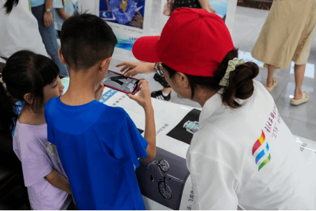 实践体验环节,志愿者们带领青少年一一感受科技的魅力。志愿者用手机扫描海报上的马车,首先映入眼帘的是一幅幅生动的马车画卷,静态图片在手机屏幕上“活”了起来,青少年仿佛置身于古代市集,耳边是马蹄声声,眼前是络绎不绝的马车队伍,直观感受到了古代交通工具的原始魅力与重要作用。紧接着,再扫描现代高铁图片,画面一转,手机屏幕上现代科技的奇迹——中国高铁,呼啸而来。