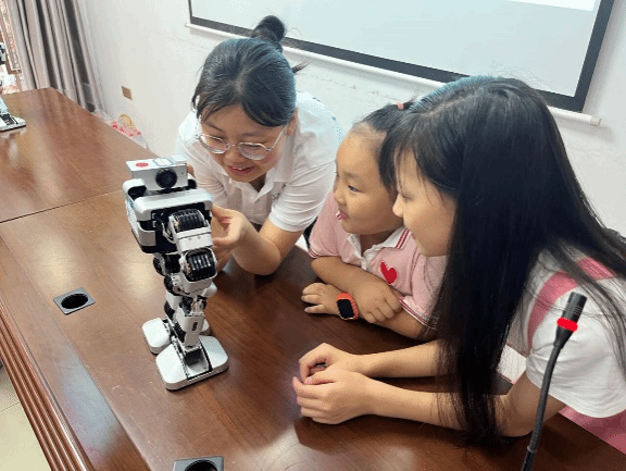 活动开始,志愿者们与孩子们热情互动,仔细询问并了解儿童们的学习和兴趣爱好情况。随后,志愿者们认真讲解,小朋友们专注倾听,并为孩子们展示机器人的各种操作,同时针对机器人原理、科技创新、未来发展等方面进行科普介绍。最后,志愿者邀请小朋友们学习如何操控机器人,并解答有关儿童科技创新方面的疑问,同时鼓励孩子们要保持好奇探索的精神,培养创新创造的思维。