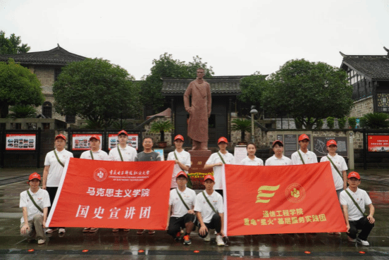 (图为宣讲团成员在杨闇公同志雕像前合影)