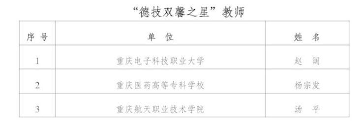 近期,重庆市职业教学学会公布了新时代西部大开发— “现代职教之星”遴选结果,我校通信工程学院赵阔老师获得“德技双馨”教师之星称号。