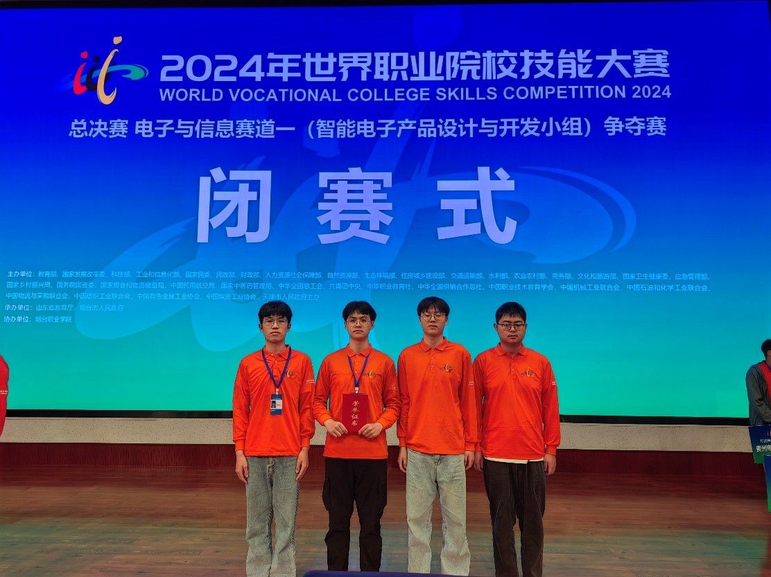 10月30日,2024年世界职业院校技能大赛总决赛争夺赛“智能电子产品设计与开发”赛项比赛在山东圆满落幕。我校电子与物联网学院参赛团队在众多强手中脱颖而出,荣获铜奖。