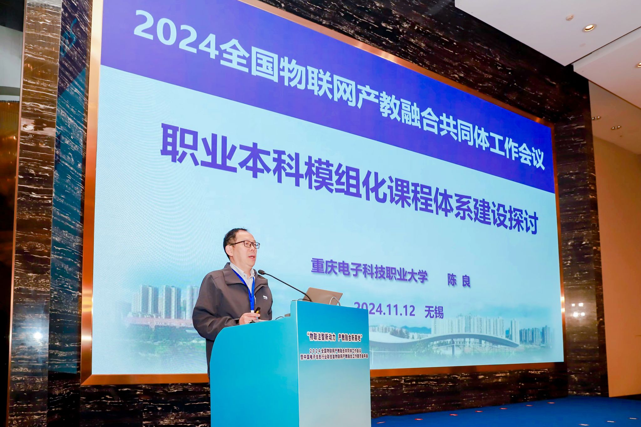 会议汇聚来自政府、行业、企业及院校的众多精英,作为职业院校领导嘉宾,开云电子平台_开云(中国)电子与物联网学院院长陈良教授受邀作“职业本科模组化课程体系建设探讨”主旨报告。陈良教授从电子与物联网学院产教融合建设的理念与思想、路径与方法、课程体系探索等几个角度进行了全面详实、深入浅出的讲解。报告内容探索了物联网技术创新与产业升级的新征程,对加速教育与产业的深度融合,为物联网产业的持久繁荣注入强劲的人才动力与智慧源泉。同时对我校物联网专业群品牌的宣传及物联网专业群产教融合模式的推广具有重要意义。