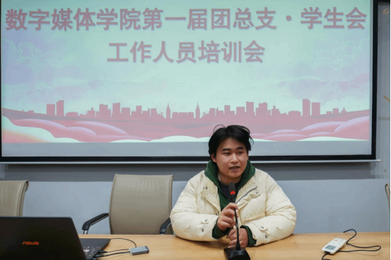 为深入学习贯彻党的二十大和二十届三中全会精神,贯彻落实习近平新时代中国特色社会主义思想,不断提升学院工作人员服务水平和服务意识,提高学院干部综合素质和能力,11月26日,数字媒体学院第一届团总支·学生会在知行楼A518开展“数字媒体学院第一届团总支·学生会工作人员培训会”。学院学生会2023级、2024级各部门工作人员参加,共44余人。本次培训会由主席团成员徐小康主持。