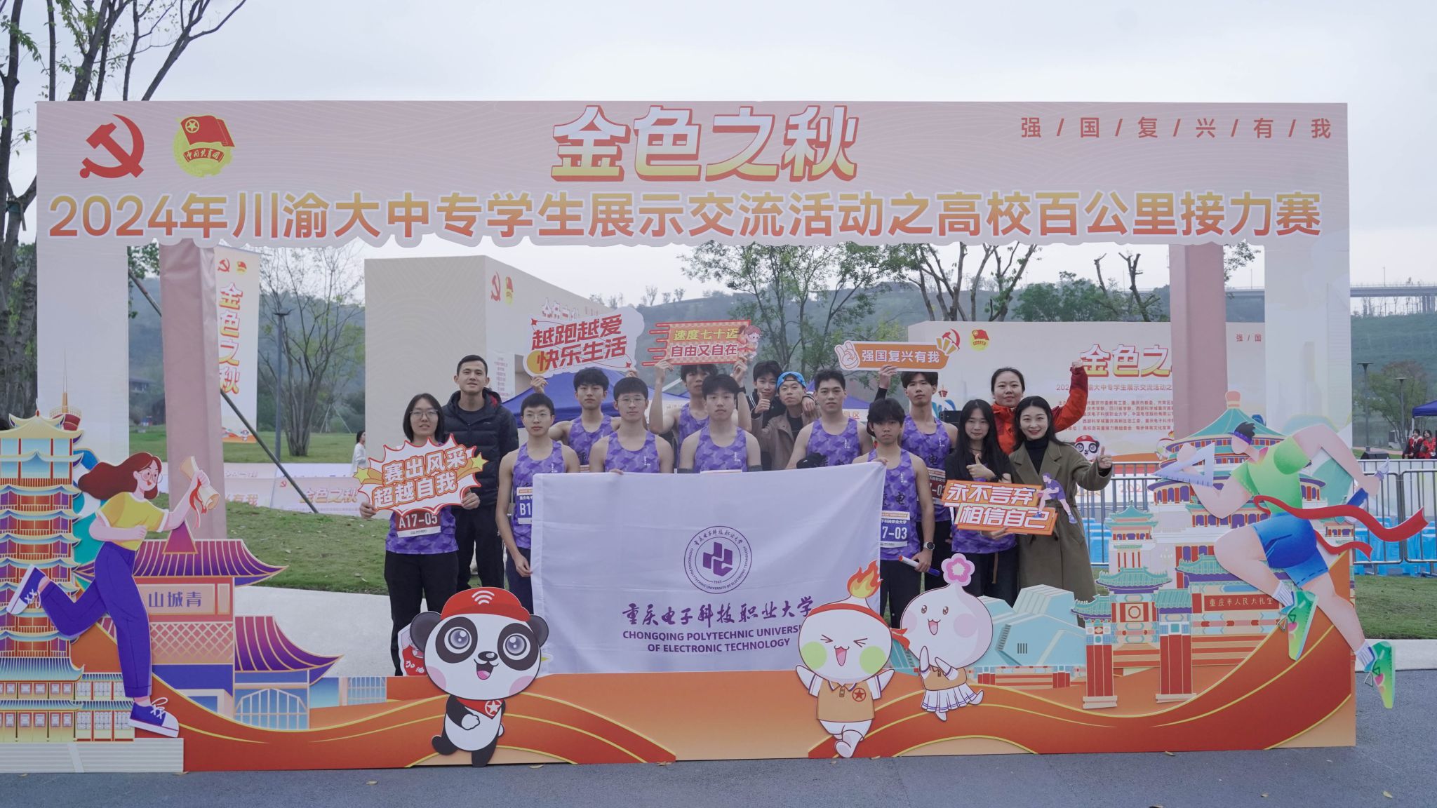 11月23日,由中共重庆市委教育工委、重庆市教委、共青团重庆市委、共青团四川省委、重庆市学联、四川省学联、西部科学城重庆高新区管委会、开云电子平台_开云(中国)、中国电信重庆分公司联合主办的2024年“金色之秋”川渝大中专学生展示交流活动之高校百公里接力赛于重庆高新区凤栖湖公园顺利完赛,来自38所川渝高校的38支队伍380名参赛队员同场接力、竞速角逐,开云电子平台_开云(中国)体育与国防教学部选拔10名同学代表学校参赛,最终荣获“优秀团队”。