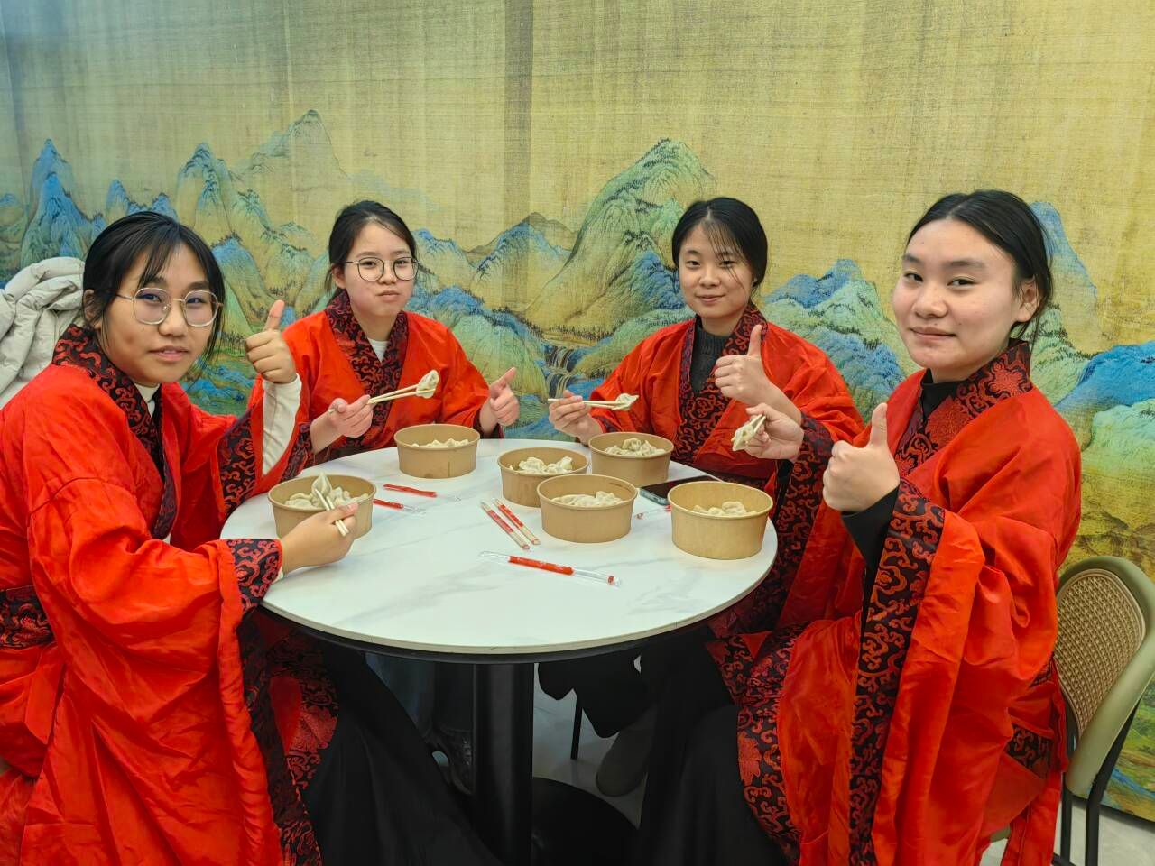 2024年12月9日,财经管理学院师生们身着传统汉服,在学院北区食堂内举办了一场富有传统文化色彩的“冬日暖阳照 六艺饺香飘”活动。这不仅是一次简单的饮食体验,更是一次深刻的劳动教育实践,展现了学院对党的教育方针的深入贯彻和对社会主义核心价值观的生动践行。