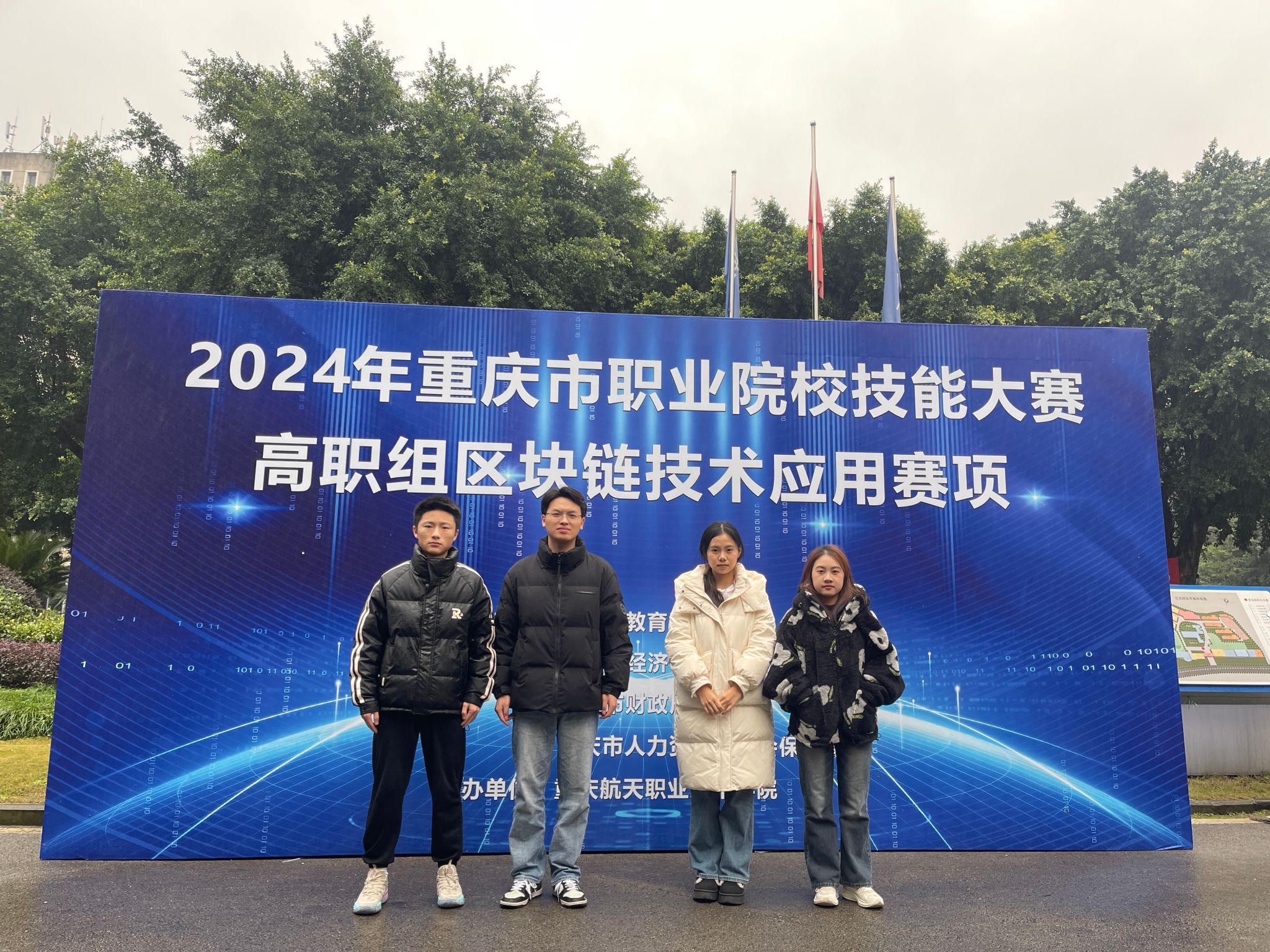 由重庆市教育委员会、重庆市经济和信息化委员会、重庆市财政局、重庆市人力资源和社会保障局联合主办,重庆航天职业技术学院承办的2024年重庆市职业院校技能大赛区块链技术应用赛项,于2025年1月9日在重庆航天职业技术学院落下帷幕,我校胡心雷、张恒、杨睿、王正霞等老师指导的梁缘、袁佳佳、赵永杰、娄波、陶琳佳、雷娇、刘洪宇、钟洋怡等8位同学组成2个参赛队参加了比赛,比赛中选手们沉着应对、稳定发挥,分别夺得金奖、银奖各1项,且获得国赛出线权,将代表重庆市参加2025年世界职业院校技能大赛区块链技术应用赛项比赛。