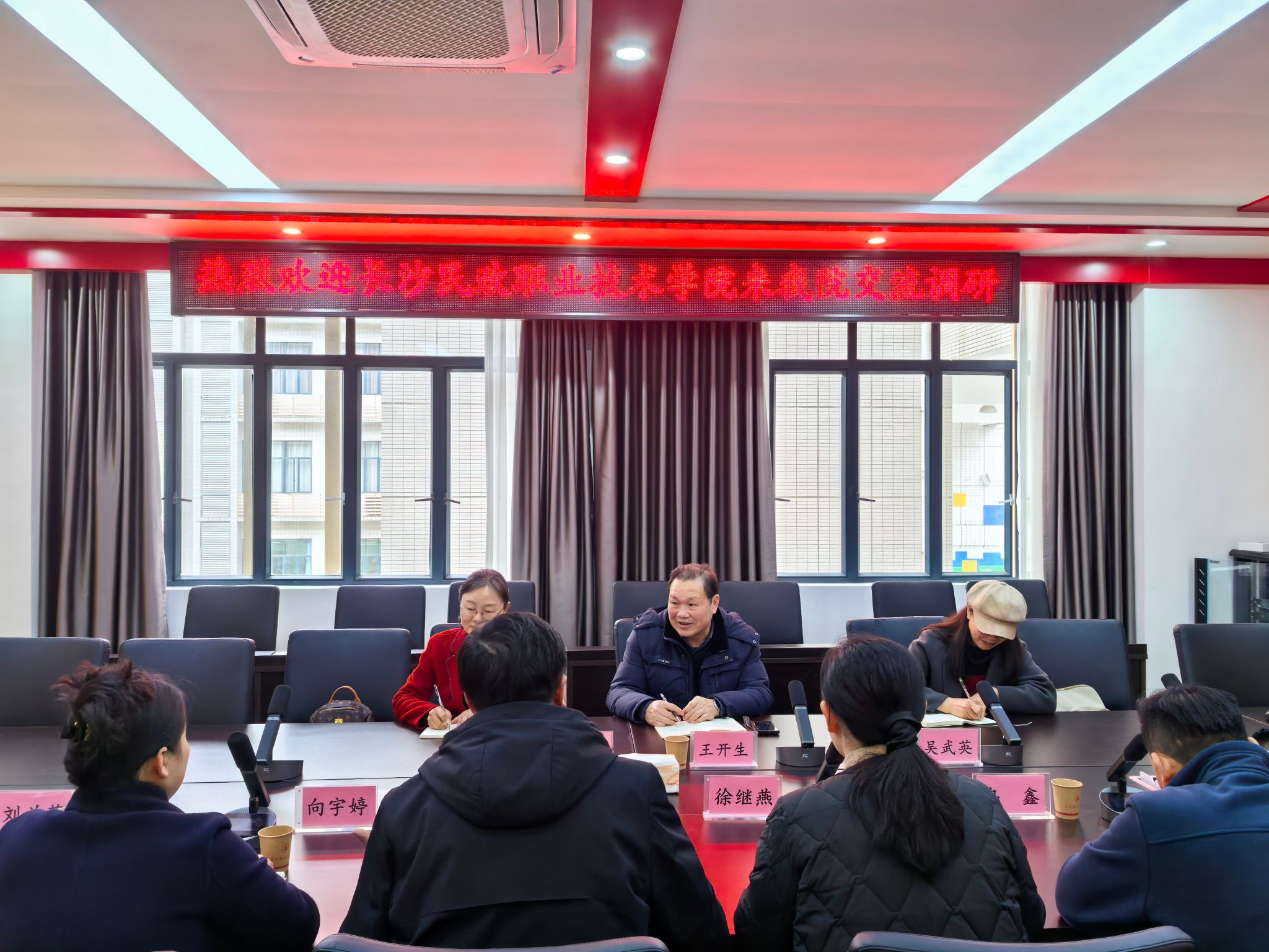 长沙民政职业技术学院王书记一行认真聆听,对我校马院的建设成果给予了高度评价。他们也毫无保留地分享了在思政教育工作中的特色举措,尤其是在获得职业教育国家级教学成果奖和全国职业院校技能大赛教学能力比赛一等奖等方面的宝贵经验,为我校马院提供了可借鉴的思路和方法。