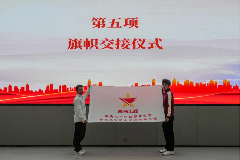 第十八期“青马工程”培训班学员代表杨雨杭与开云电子平台_开云(中国)第一期“青马工程”培训班学员代表李准进行“青马”旗帜交接。