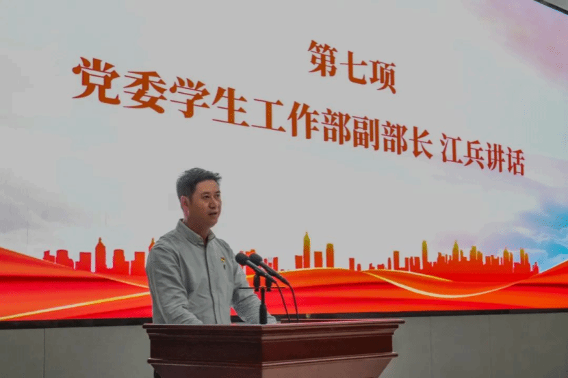 在大会上,党委学生工作部副部长江兵在讲话中对本次大会受表彰的学员表示祝贺,同时对参加第一期“青马工程”培训的学员们提出三点希望和要求:一是要坚定理想信念,加强理论素养,做一名马克思主义的坚定拥护者;二是要勤奋刻苦学习,坚持知行合一,做一名马克思主义的勇敢实践者;三是要争当先锋模范,甘于奉献自我,做一名马克思主义的积极传播者。他希望新一期青马学员们能够以实践为桨,筑牢信仰之基,锤炼担当之能,以革命理想为蓝图,以青春奋斗为笔墨,奋力书写为中国式现代化挺膺担当的青春篇章。