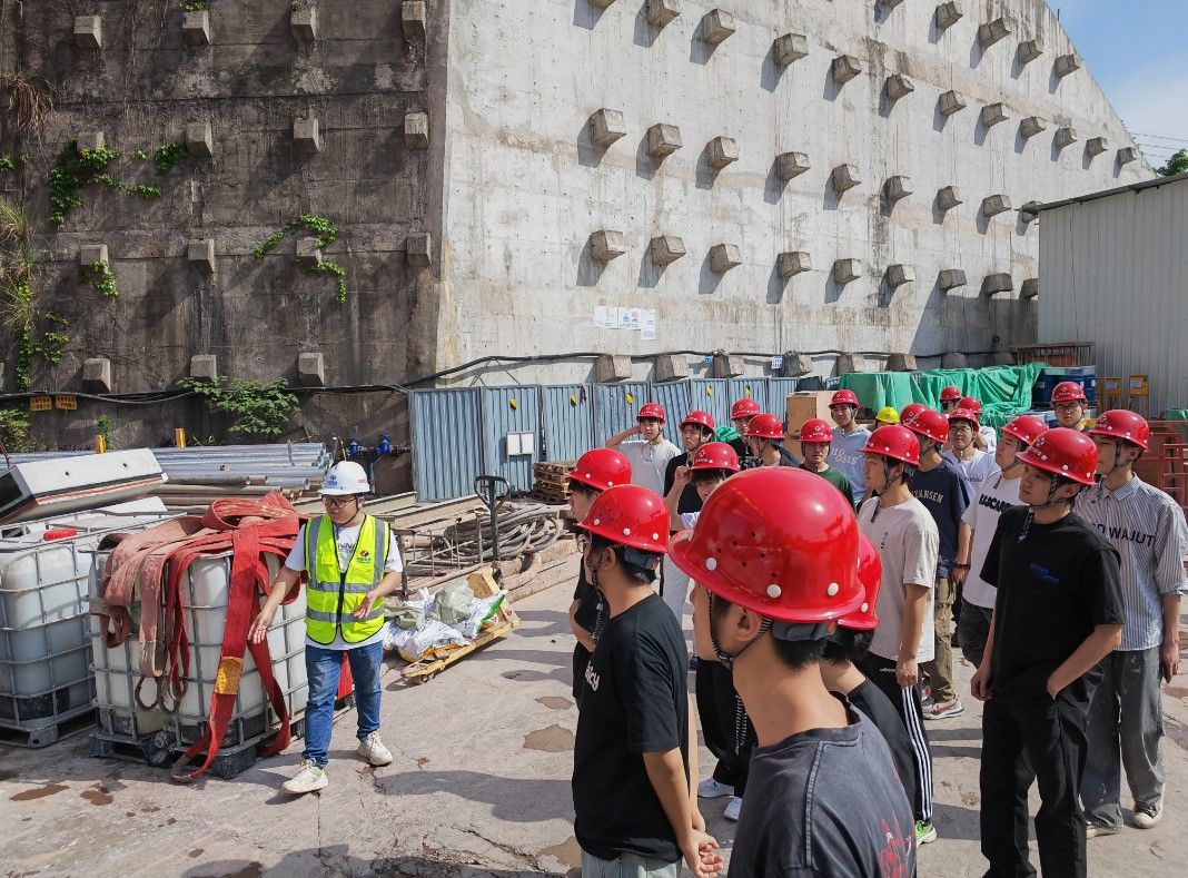 重庆轨道交通27号线是重庆市重点工程,拥有重庆轨道交通领域首条穿江隧道,是长江上游第一条轨道交通穿江隧道,也是国内首座长江下采用“双模智能化盾构”修建的轨道交通水下隧道工程。中国水电四局大学城南站技术负责人带领学生沿着施工楼梯进入地下施工现场,详细的介绍了整个工程概况、施工进度、TBM控制等,面对施工过程中地质条件复杂、施工难度大等挑战,项目团队充分发挥水电四局在隧道施工领域的专业优势,科学组织、精细管理,采用先进工艺和智能化监测手段,确保了隧道安全、高效掘进,保证高质量完成贯通任务。