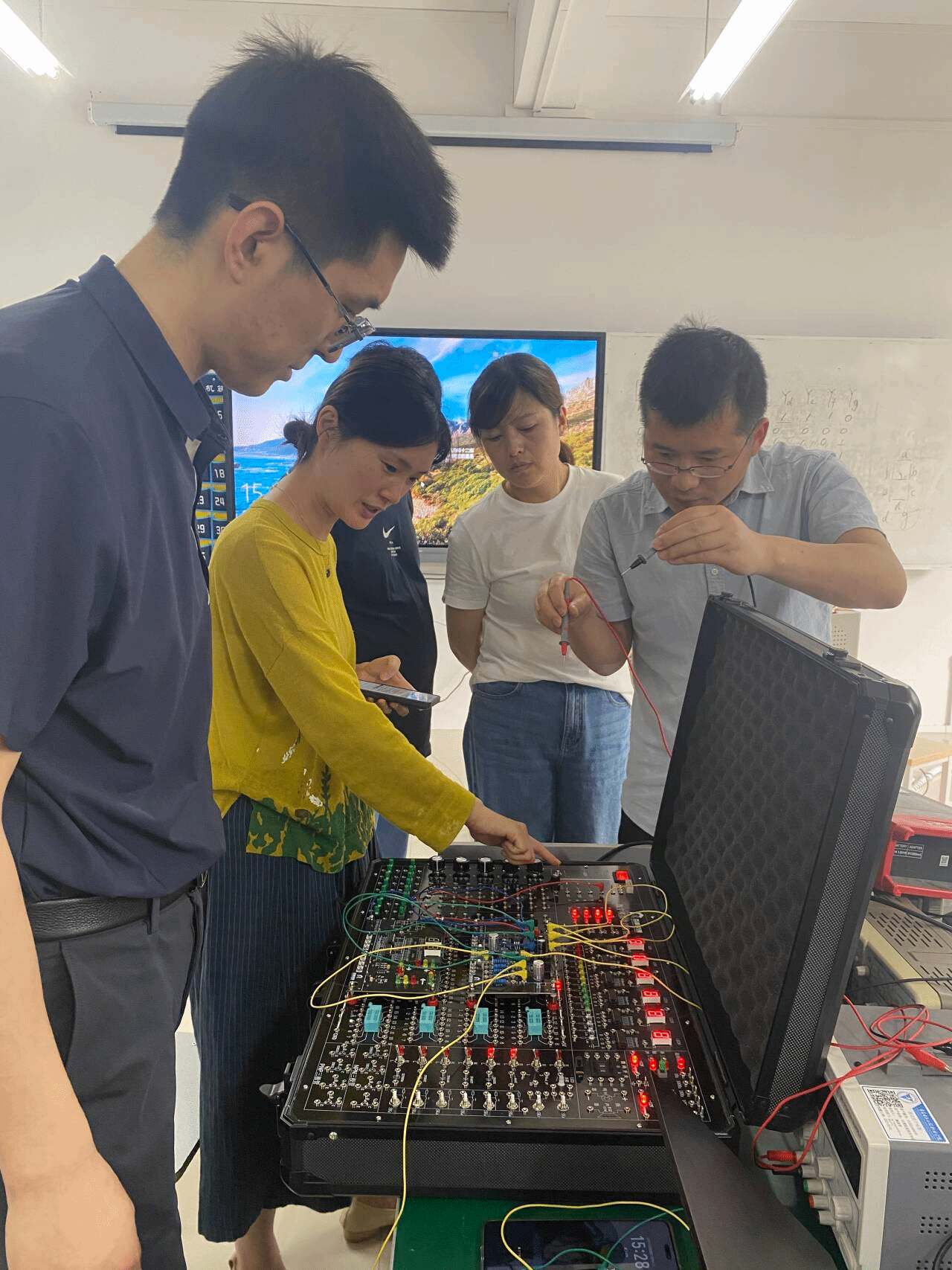 图2 校内教师与企业专家探讨实验设备开发