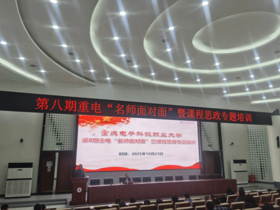 为深入贯彻落实立德树人根本任务,全面推进课程思政建设,提升教师教书育人能力,10月23日,我校教务处、课程思政教学研究中心成功举办了第8期重电“名师面对面”暨课程思政专题培训。本次培训旨在发挥教学名师的示范引领作用,深化教师对课程思政内涵的理解,进一步探索将价值塑造、知识传授和能力培养融为一体的有效路径。各二级学院专业负责人、专业带头人、骨干教师、新进青年教师等教师代表近200人参加了本次培训。