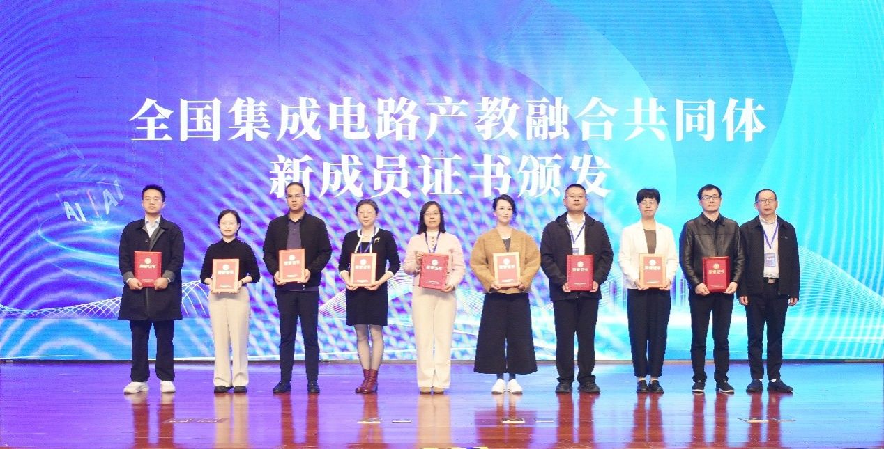 专题报告环节完成后,陈良教授作为全国集成电路产教融合共同体轮值理事长单位代表,在大会上为淄博师范高等专科学校、紫光云技术有限公司等15家新加盟成员单位颁发证书。此举标志着共同体进一步扩大了合作网络,强化了跨区域产教协同,提升了资源整合能力,未来将通过跨区域协同深化人才共育、技术共研。