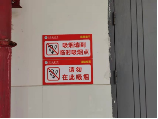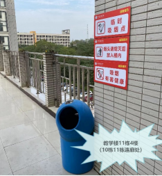 11月22日,在学院所属11栋教学楼设置2处临时吸烟点,张贴各种控烟宣传标识、标语。