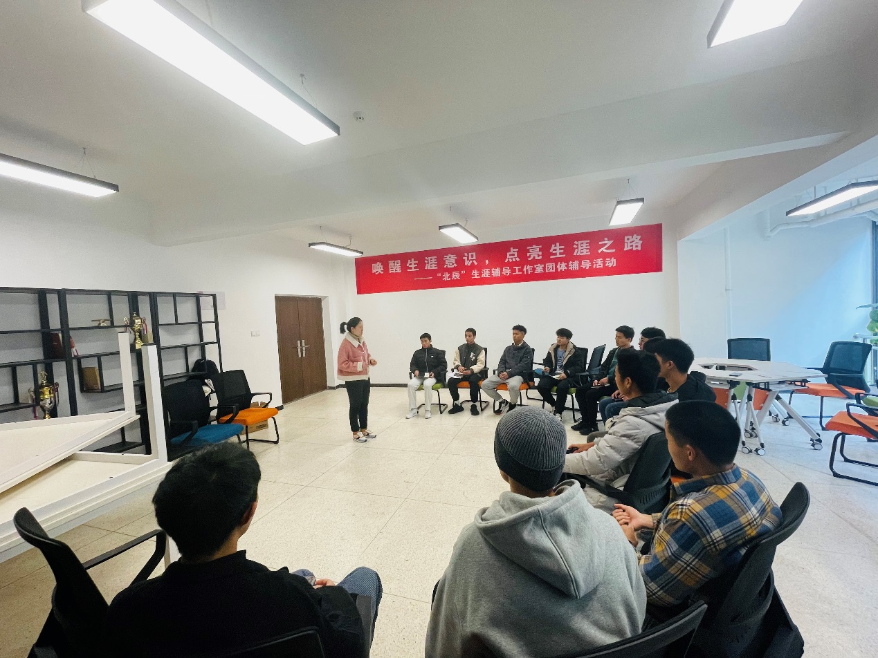 2021年11月25日下午,由智能制造与汽车学院“北辰”生涯辅导工作室举办的第一期团体辅导活动在北区18栋“北辰”生涯团辅室顺利开展。团体辅导活动共举行六期,本期主题为“缘来是你”,活动由智能制造与汽车学院辅导员周春霞老师、谭周琴老师指导,来自2021级不同专业的12名同学参与了活动。