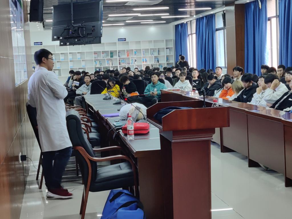 讲座内容分为急救理论知识和现场操作两个部分。急救理论知识部分,刘老师首先为同学对呼吸道异物阻塞的人们进行应急救护的重要性及救护措施进行了讲解。介绍了如何处理气道异物梗阻紧急情况,并现场示范正确操作方法,使急救知识形象化,具体化,在具体真实操作中,加强了学生对急救方法的理解与感悟。