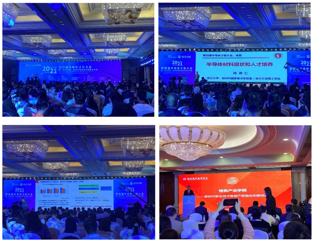 10月20日,第四届半导体才智大会在浙江诸暨召开。大会由中国电子信息产业发展研究院、中国半导体行业协会、中共诸暨市委、诸暨市人民政府共同主办,以“芯之所向 行之所往”为主题,来自行业主管部门的领导,产业界、教育界和投资界等代表600余人参加。电子与物联网学院微电子技术专业陈凯让博士受邀参会。大会主要分为‘集成电路发展态势’和‘集成电路产教生态建设与双向赋能’两个议题。