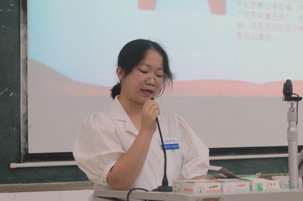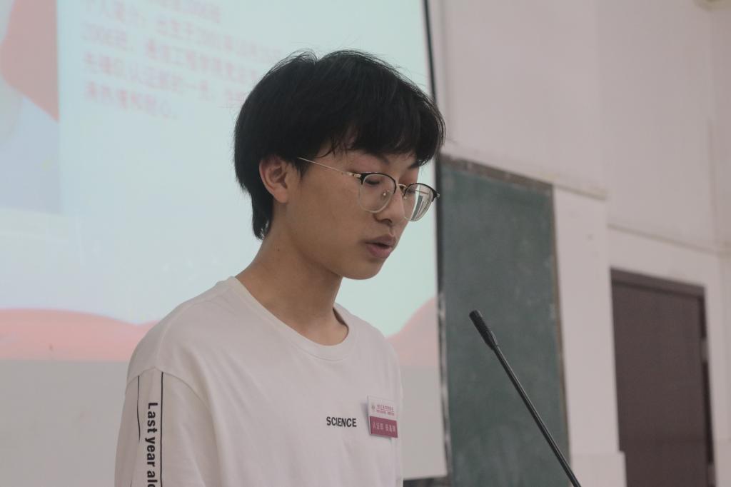 在同学们饱含深情的演讲过程中,能看到队员们对党员流动服务站这一支队伍的热爱。服务与管理部成员王爱同学代表19级全体麦穗先锋队成员作述职报告和岗位调换陈述,感谢他们的无私奉献,为学院学生党建工作付出的力量。服务站的不断发展以及取得的丰硕成果离不开每一位先锋队队员的默默奉献,随后,第三届党员流动服务站站长团成员徐小宝同学给大家带来了一份特殊的述职报告。