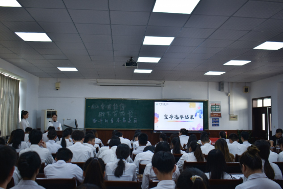 接下来,学院学生委员会执行主席方彪同学作《重庆电子工程职业学院智慧健康学院第二届学生委员会工作报告》,向参会人员汇报了智慧健康学院第二届学生委员会的工作成果。紧接着,学管科负责人任文慧老师上台宣读了智慧健康学院党总支关于学生委员会委员候选人的批复。