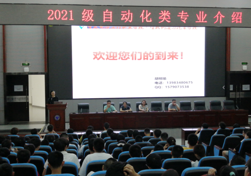 为进一步提高2021级自动化大类新生对专业的认知,让同学们更快适应大学学习生活,树立正确的人生目标。9月14日,智能制造与汽车学院自动化系在博远厅举行了新生专业教育大会。自动化系系主任吴德明、机电一体化专业主任易文翠、电气自动化技术专业主任胡明瑜、智能控制技术专业主任洪慧慧、工业机器人技术专业主任张伟、新生辅导员周春霞及2021级自动化大类全体新生参加会议。会议由吴德明主持。