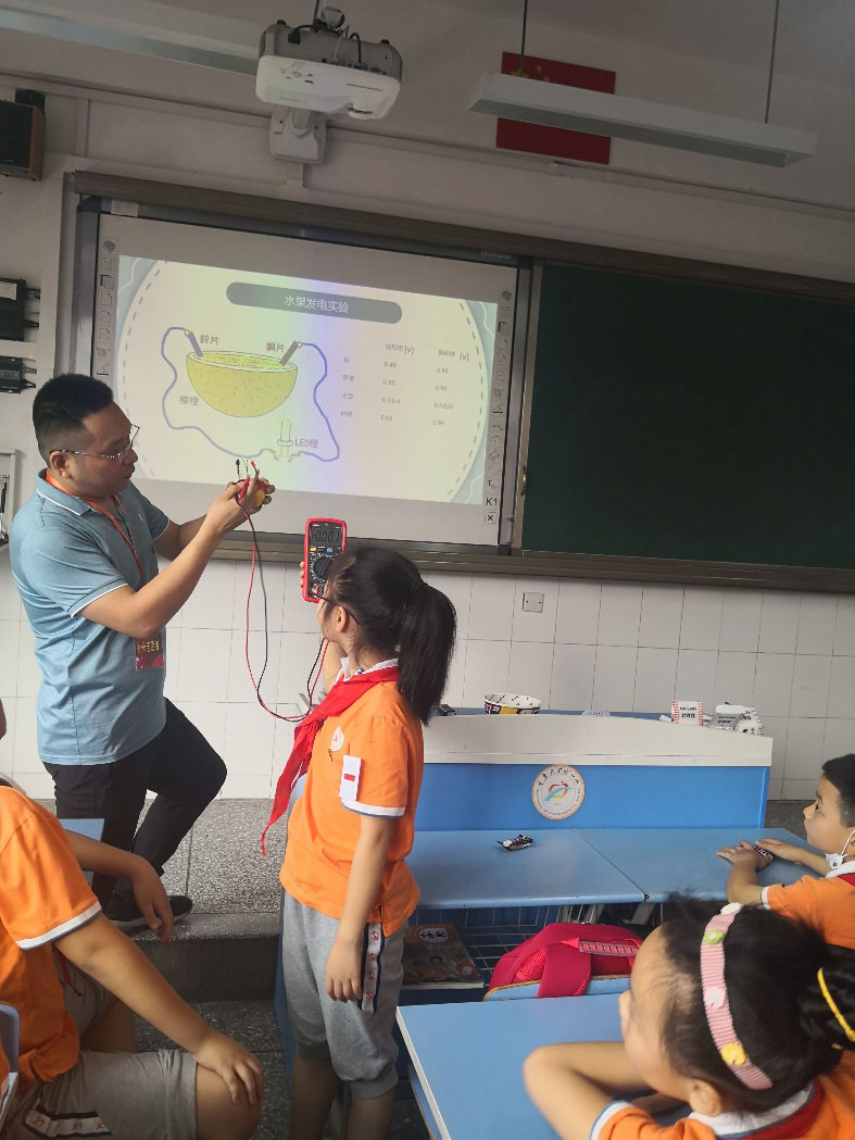 本次科普讲座由两部分组成。《科学用电》立足于少年儿童好奇爱动手的天性,通过图文、视频和现场小实验——“水果发电”,让孩子们了解了电的产生、传输,如何安全的用电、如何节约用电。《通信小科普》利用孩子们喜爱动画片的特点,围绕生活中的所见所闻,用自制的3个科普动画微视频为引子,直观易懂地向小学生们讲述了无线网络、人工智能、基站天线的基本常识,不仅增加了对通信基本知识的了解,明白了创新的重要意义,还让孩子们打消了一些常见的错误认识。