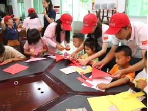 随后,实践团队组织开展了“童心向党,以画寄情” 建党100周年主题手绘活动,小朋友们纷纷在纸上画出了献给敬爱的中国共产党一百岁生日的礼物,也在画上写出了自己内心对党的祝福。一幅幅画作中,红旗招展,绘出了小朋友们以童真的赤子之心对党的敬爱和敬仰,也绘出了他们对未来的美好展望。实践团队还组织开展了“太乙飞猪”手工折纸活动。“问君何不乘风起,扶摇直上九万里”,实践团希望通过“太乙飞猪”寓教于乐,让小朋友们明白理想信念能够指引人生的奋斗目标,提供人生前进的动力。
