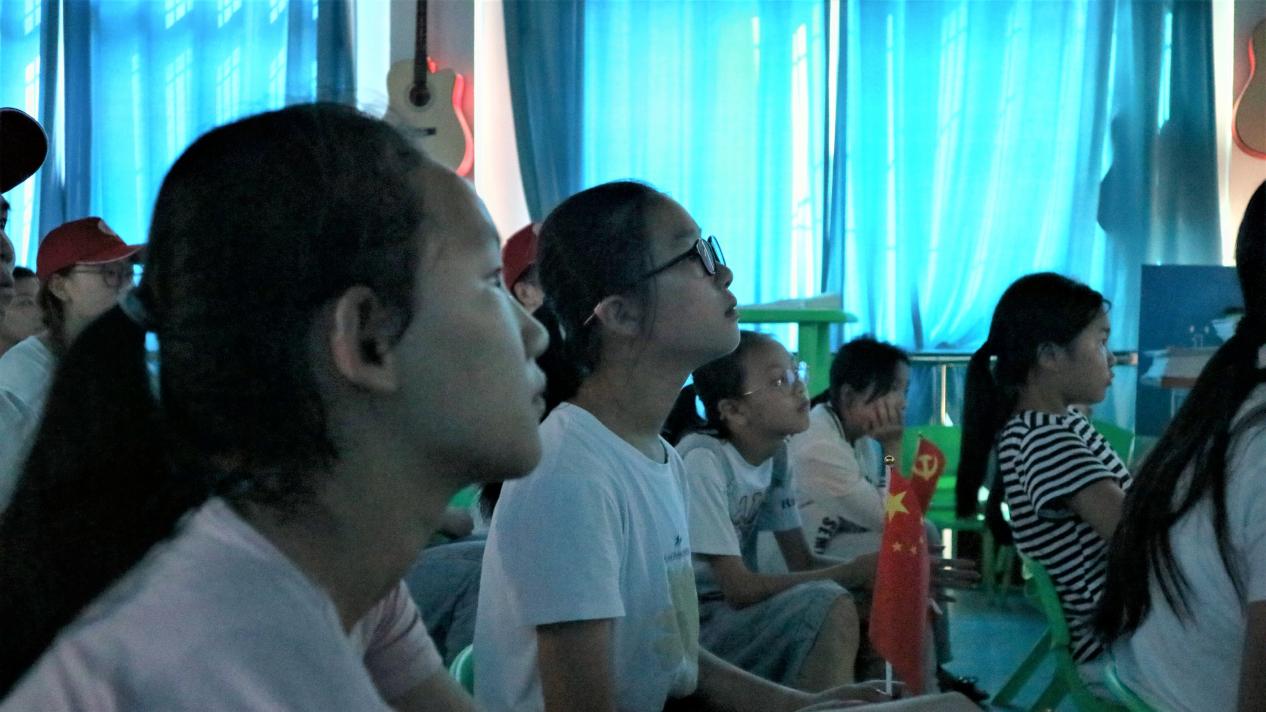 7月14,智能制造与汽车学院“万川智行”三下乡志愿服务队在重庆市万州区李河镇油房坝社区儿童服务站开展了“看红色经典电影 学百年辉煌党史”观影活动。七月的万州酷热难当,但这丝毫没有影响到服务站的孩子们观影的热情。夕阳照射着他们背上,操场上回荡着孩子们的呼喊,“走呀,快呀,电影要开场啦!”