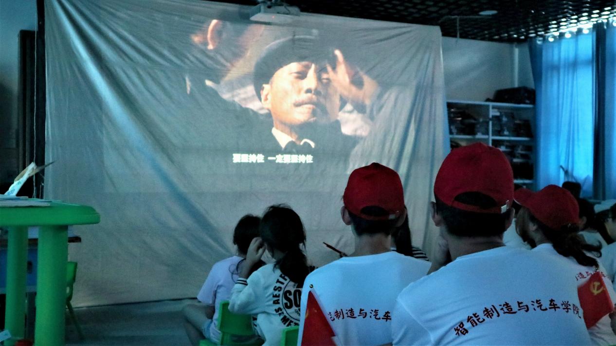 本次活动播放的影片是《建党伟业》。银幕渐渐亮了起来,一部生动的党史教科书在队员们和小朋友们眼前徐徐展开。影片再现了老一辈革命先烈们为拯救危难中的国家和民族,历尽千难万险和不懈抗争,终于创建了中国共产党的艰辛历程。小朋友们一边用童真的眼神关注着剧情的发展,一边拉着队员们不停问到,“外国人为什么要欺负我们”,“打仗的时候小朋友怎么办”,“我们长大以后可不可以当党员”?队员们耐心地和小朋友们进行了交流。队员齐丽表示,希望通过观影的形式鼓励和引导孩子们去感悟作品背后的情感和历史背景,把“共产党好,社会主义好,改革开放好”印刻在孩子们心里,让红色基因代代相传。