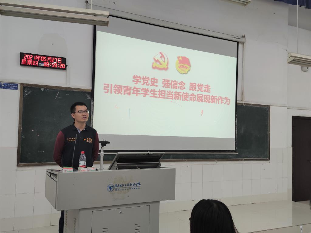 重庆电子工程职业学院团校校长、团委书记袁玉刚围绕“学党史、强信念、跟党走,引领青年学生担当新使命展现新作为”,带领大家系统地回顾了党的百年光辉历程和伟大历史贡献,通过结合自身经历与当代大学生的特点,向学员们阐述了如何才能担当新使命和展现新作为。