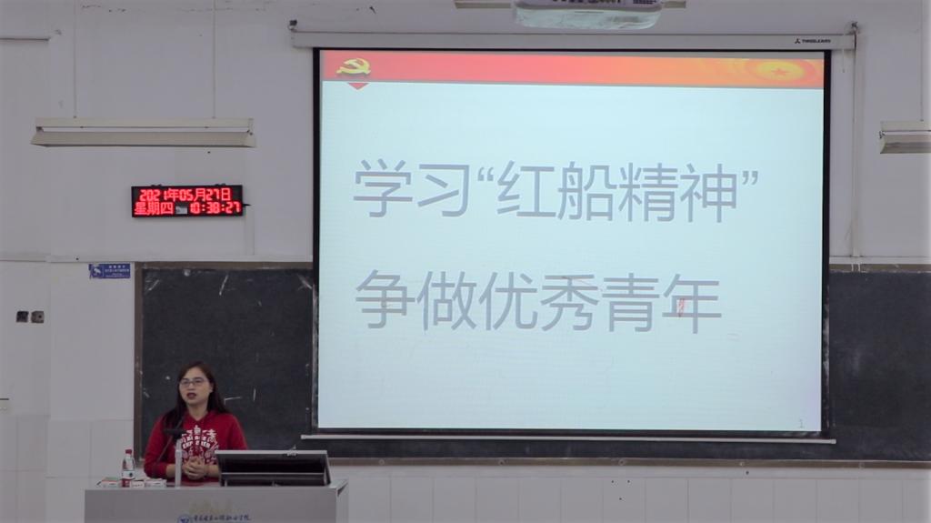 人工智能与大数据学院思想政治辅导员任丹丹老师以“学习‘红船精神’,争做优秀青年”为主题,呼吁同学们多学习“红船精神”,切身感受“红船精神”的深刻内涵,保持“不忘初心”的态度,继续开创、奋斗和奉献继承和发扬党的优良传统。