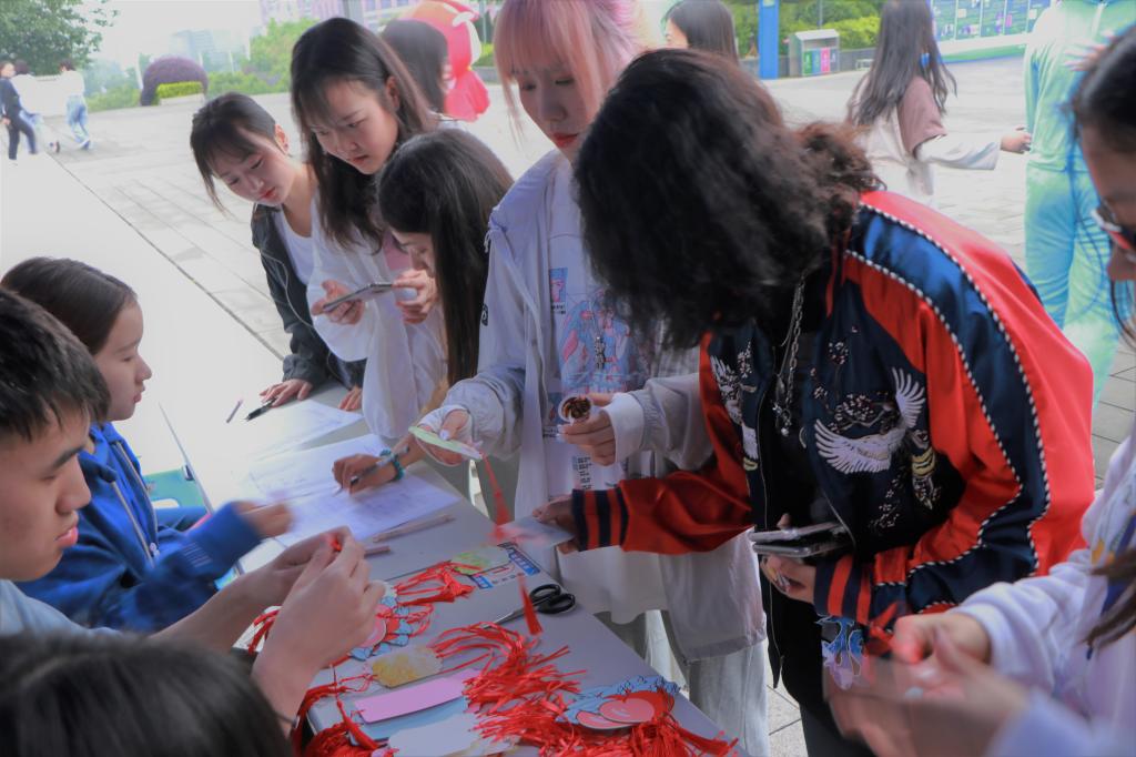 在“万能邮箱”活动的桌前,同学们都抢着领取许愿牌,将自己的美好愿望写在许愿牌上。同学们在许愿牌上留下了一行行有温度的文字,一笔一划皆是他们的期望,皆是他们对未来充满的向往。