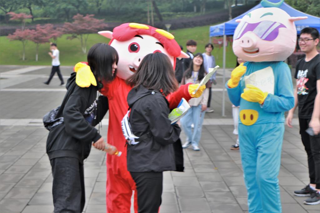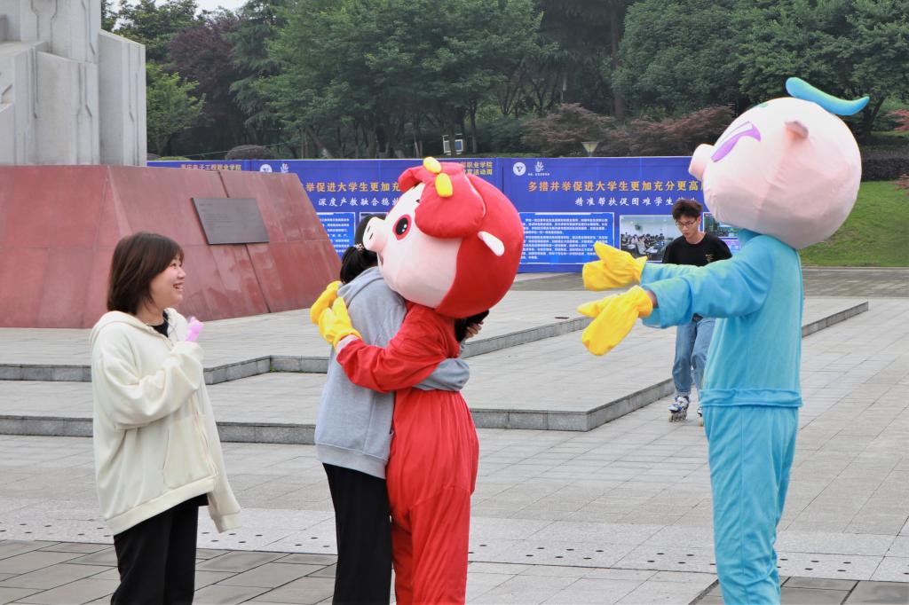 在身穿玩偶服的工作人员“爱的抱抱”下,活动正式开始。这个互动的拥抱就好似清晨的第一缕阳光,照进同学们的心里,让人整天都沐浴在暖阳中。