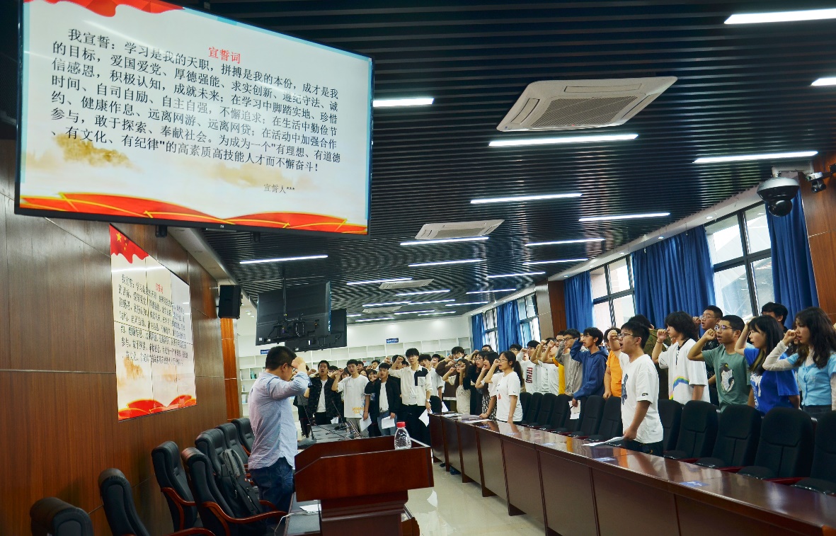 此次入誓教育活动共分三个阶段进行,第一阶段,赵阔老师和姚先友老师分别从“大学——我们该有的拼搏”;“你现在站在哪里并不重要,重要的是你下一步走到哪里”;“不负青春、不负韶华,努力进取、立志成才”三个方面为同学们做了激情澎湃的演讲。激励同学们在风华正茂的青春年代,勇于追梦、勇于拼搏,为成为一个"有理想、有道德、有文化、有纪律"的高素质高技能人才而不懈奋斗!