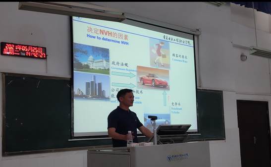 顾灿松博士结合自己在行业内积累的经验和丰富的阅历,给同学们讲解及分析了许多汽车领域NVH控制方法的实际案例,并同时向同学们提出几点期望:第一,期望同学们扩大知识面,了解汽车领域前沿技术;第二,期望同学们努力学习同时把自己所学专业和社会需求相结合起来;第三,期望同学们脚踏实地注重实际技能的培养。此次讲座资料丰富多彩,语言生动幽默且具有哲理,同学们纷纷表示受益匪浅。