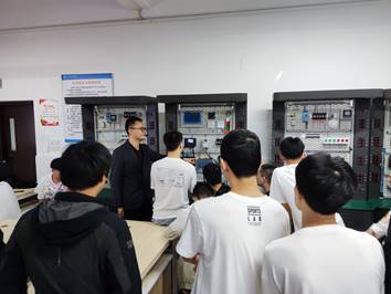 图2 工业互联网技术专业主任向学生介绍工业互联网相关设备