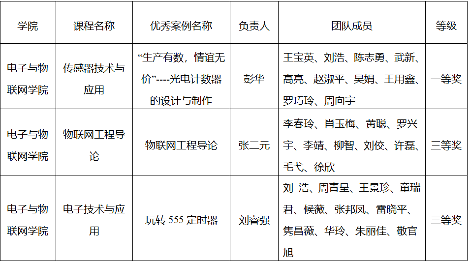 近日,校级首批“课程思政典型案例”评选结果揭晓,电子与物联网学院共有3个成果获奖,其中一等奖1项,三等奖2项,获奖总数位居各申报学院前列。同时,学院荣获优秀组织奖。