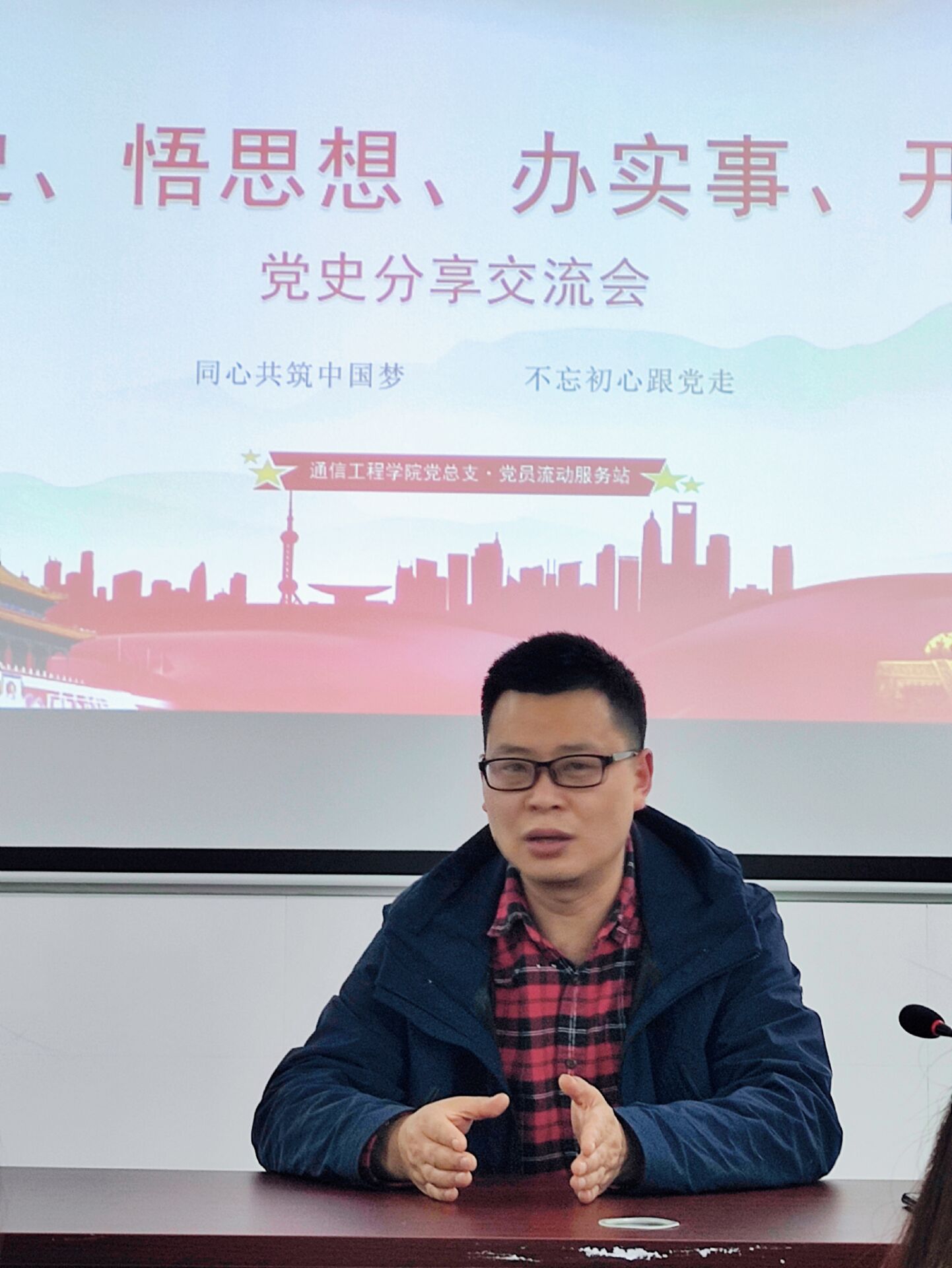知党史才能更加自觉牢记初心,明党史才能更加坚定担当使命。通信工程学院党总支·党员流动服务站定期举办的党史学习分享会在我院党建活动室顺利举行。参加本次分享会的有通信工程学院通信技术党支部书记姚先友老师和自愿参加本次分享会的入党积极分子。