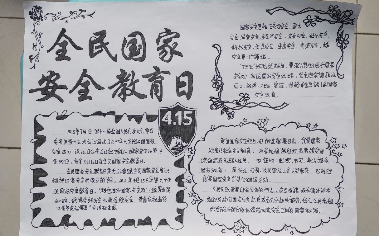 为了开展好本次活动,服务站就本次手抄报的目的、主题、内容、形式等做了详细的布置。活动中,同学们积极参与,从材料收集、版面设计、绘图书写等方面都做了精心设计。在这个美好季节,同学们利用课余时间绘制一幅幅生动的手抄报,用自己的方式响应“全民国家安全教育日”的活动号召,“国家安全”的种子在同学们心中生根发芽。