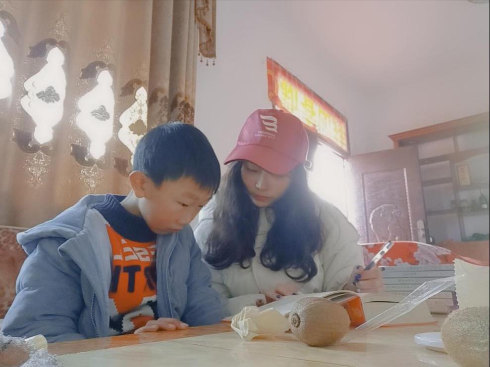 儿童教育是提高人口素质的重要环节,青春期到来前的未成年人被称为儿童或少年,他们在思想、性格、智力、体魄等方面的可塑教育性很强。儿童教育是整个教育事业的重要基础。就读于思居小学的瑞瑞今年九岁了,目前在上五年级。说起自己的学习情况,小小年纪的他信心满满的说:“很简单啊,偶尔遇到英语不会做。”说着把自己作业拿出给队员们检查,队员们辅导瑞瑞完成了他的英语作业,在辅导作业过程中,队员们发现瑞瑞虽然才9岁,但已经养成了良好的学习习惯。