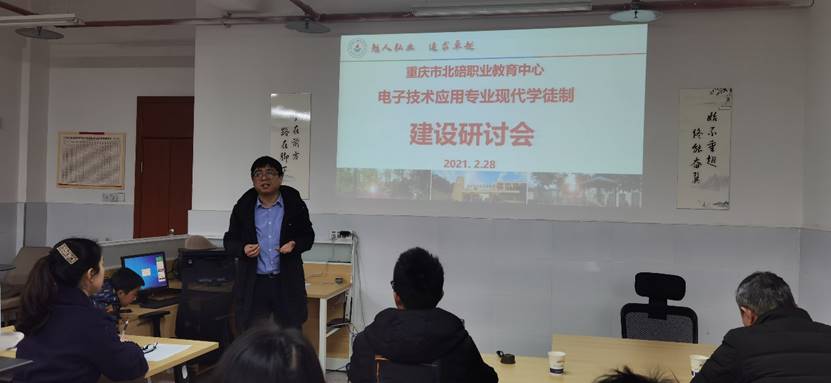 为推进学院现代学徒制项目建设,提升教学质量,2月28日,电子与物联网学院教师徐欣前往北碚职业教育中心参加电子技术应用专业现代学徒制建设研讨会。