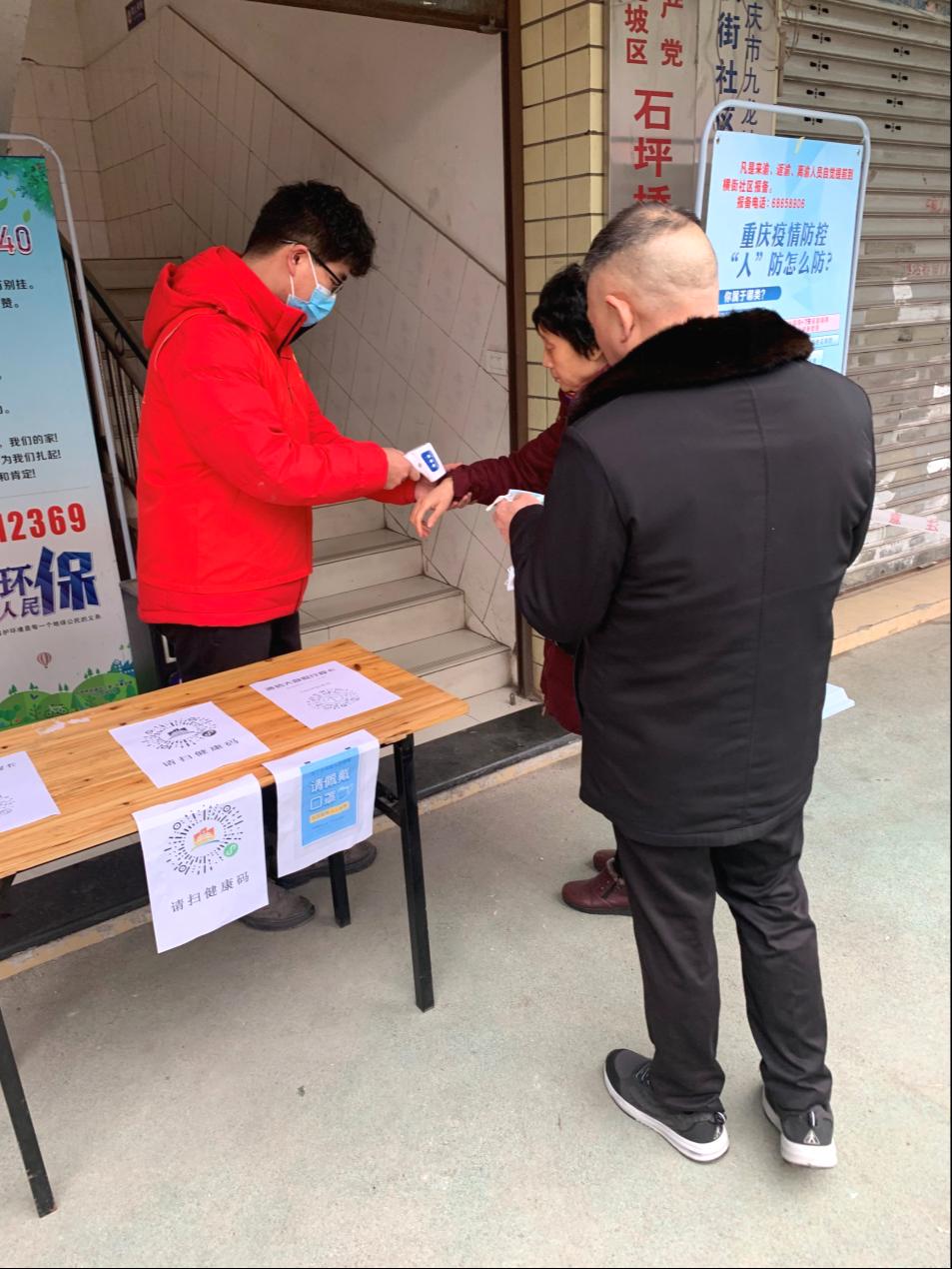 年关将至,社区内人员流动较大,社区居委会需把控管辖区域内所有小区、公共场合的疫情防控问题,落实各外地返家人员的登记情况,工作压力倍增。2021年2月3日,徐誉航同学为了贡献出自己的一份力量,响应社区号召加入了重庆市九龙坡区石坪桥横街社区居委会的疫情防控志愿者小组。