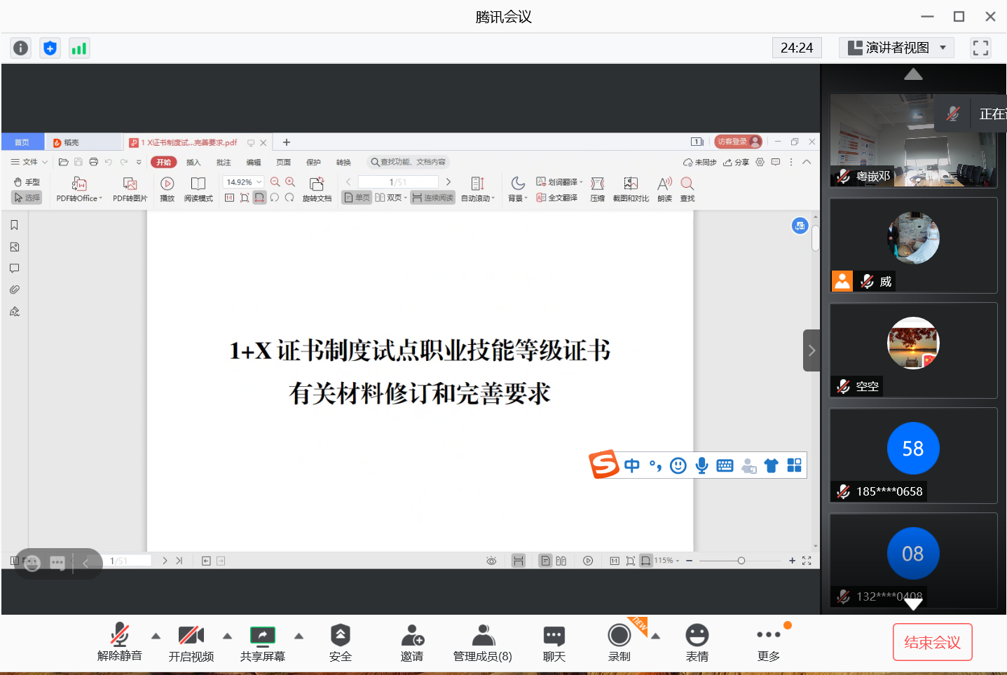 1、介绍1月29日教育部会议通知主要要求,于2月5日前提交《职业技能等级标准》定稿文件、《试点建设有关事项说明》文件,于2月10日提交通知文件中要求的其余文件。