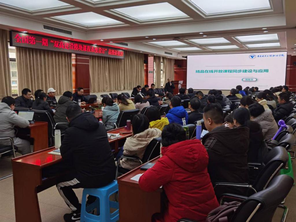 1月17日,由重庆电子工程职业学院电子与物联网学院主办的 “双高建设模块课程系统设计”高级研修班培训在博润厅举行,基础平台高小梅、吴娟、雷晓平、黄聪和冯静参加培训。