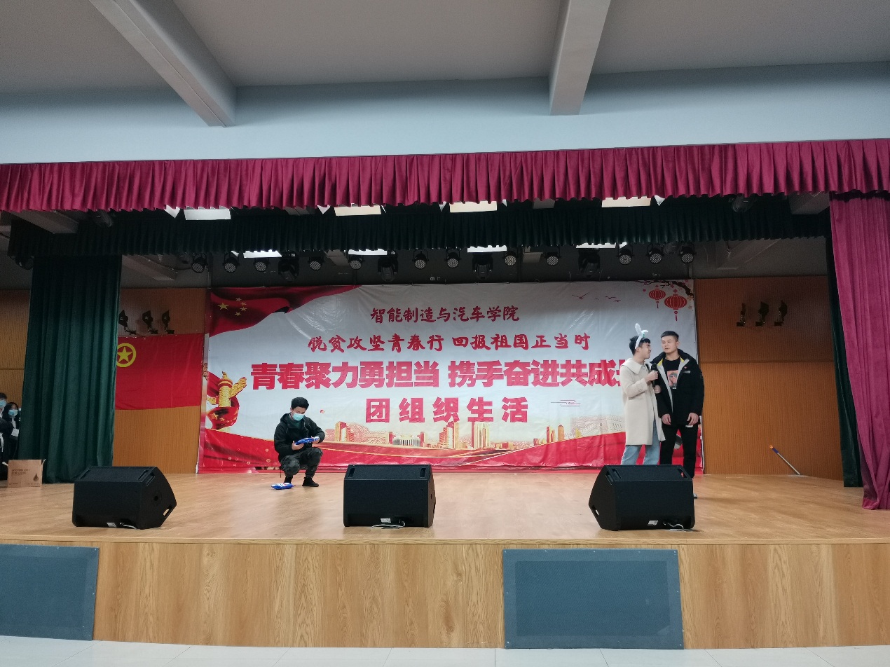 为学习贯彻党的十九届五中全会精神,引领广大青年团员听党话、跟党走,展示青年团员风采,激扬青春力量,增强团支部成员的凝聚力,提升班团学生干部的工作能力,激发同学们的创新意识和创造活力,2020级机电设备维修与管理、无人机应用技术、汽车制造与装配技术专业于12月12下午14:00在北区食堂四楼活动室开展了“脱贫攻坚青春行 回报祖国正当时”团组织生活暨“青春聚力勇担当 携手奋进共成长”主题活动。