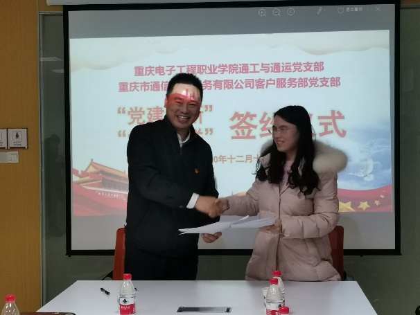 通信工程学院党总支书记曾晓宏与重庆市通信产业服务有限公司客户服务部党支部书记方运海分享了双方党建工作的经验何做法;双方人员就校企合作方面开展深入沟通交流,在开云电子平台_开云(中国)、校企合作、科研合作等方面达成合作意向;重庆电子工程职业学院通工与通运党支部与重庆市通信产业服务有限公司客户服务部党支部签订了《党建翼联协议》并挂牌“校企共建党建创新实践活动基地”。
